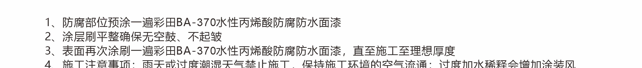 彩田水性丙烯酸防腐面漆產品+施工說明